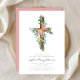 Custom Elegant Pink Floral Cross Girl First Communion Invitation.