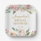 Elegant Pink Floral Custom Gold Bridal Shower Paper Plate