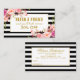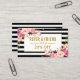 Elegant Watercolor Pink Blush Floral and Gold Frame and Black & White Stripes Referral Card