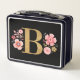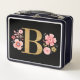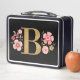 Go back to school in style with this pretty pink floral monogram lunchbox. It is decorated with a gold letter "B" surrounded by flowers. Designed for you by Blackberry Boulevard.