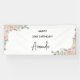 Make a statement with this beautiful, customizable birthday banner! Featuring a chic design of soft watercolor blush pink flowers and delicate green eucalyptus foliage, this banner adds an elegant touch to any birthday celebration, whether indoors or outdoors. Easily personalize the age (e.g., 30th Birthday) and the name of the recipient in a stylish script font. This durable, eye-catching banner is perfect for setting the scene and celebrating a milestone birthday in sophisticated style. Available in various sizes to fit any party venue.