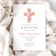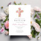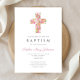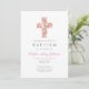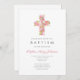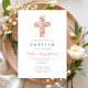 Elegant Pink Floral Religious Cross Baptism Invitation