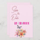 Announce your special day in style with this elegant Save the Date card featuring a soft pink background, graceful script text, and a vibrant floral bouquet topped with a delicate butterfly. The unique scalloped shape adds a touch of charm and sophistication, perfect for modern, romantic, or garden-themed weddings. Customise the date and details to make it truly yours. A lovely way to give guests a preview of your celebration!