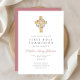 Elegant Pink Floral Wreath Cross First Communion Invitation