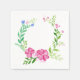 Elegant paper napkins featuring a beautiful pink floral wreath.