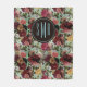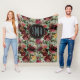 Elegant pink flowers aqua pattern monogram fleece blanket