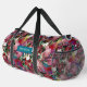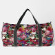 Elegant pink flowers red pattern monogram printed duffle bag