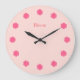 Elegant pink flowers Wall Clock with personalised Bloom text. Ideal for all environments. It makes a good present for Birthdays, anniversaries, gift for a new house, new office, etc.