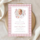 Elegant Pink Gingham Bow Photo Girl Baptism Invitation
