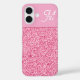 Elegant Pink Glitter Monogram with Name Script IPhone 16 case