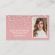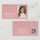 These elegant pink business cards with pink glitter sprinkling down from the top edge would be fabulous for you. The front features your photo, your name, title and business name. The back has your address, phone number, social media information, and QR Code. It's super easy to upload a photo and use the templates. In just a few seconds you can see your luxurious business cards. These are perfect for a nail technician, hair stylist, makeup artist, esthetician, beauty salon, skin care specialist, or lash and brow specialist.