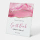 Elegant Pink & Gold Agate Stone Wedding Pedestal Sign.