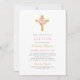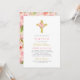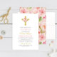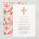 Elegant Pink Gold Floral Cross Girl Baptism Invitation