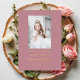Elegant Pink Gold Foil Photo Girl First Communion Foil Invitation