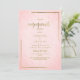 Modern, elegant, chic pink and gold French lace features a stylish floral lace design with printed gold handwritten typography. This trendy, classy wedding Engagement Party Invitation is the perfect print for any bride and groom's Wedding event. Customize this design with your details and monogram initial. All designs are printed.