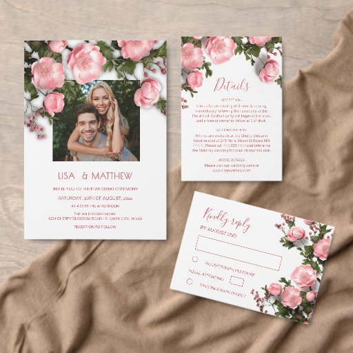 Step into the future of wedding invitations with this stunning wild roses floral 3D design. The delicate, lifelike pink flowers create a captivating visual that almost feels like you can reach out and touch them. The intricate, three-dimensional effect adds a layer of depth and elegance that’s truly one-of-a-kind. The modern, stylish font perfectly complements the design, creating a sophisticated and fresh look.