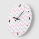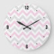 Elegant Pink, Grey and White Chevron Pattern Large Clock