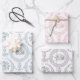 Elegant Pink, Grey & Blue on White Engraved Floral Wrapping Paper Sheet