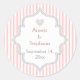 Elegant pink, grey stripes wedding Save the Date Classic Round Sticker