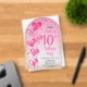Elegant faux glitter and patterned pink balloons with pink ribbon strings and pink accent stars "10" 10th birthday party celebration invitation.