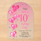 Elegant Pink Heart Balloons 10th Birthday Party Acrylic Invitations