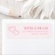This return address label features a minimalist design with two interconnected hearts in a soft pink hue, creating an elegant and unified look. The clean white background enhances the simplicity of the layout, which includes modern sans-serif typography for clear readability. Perfect for personalizing invitations or announcements, this label conveys warmth and sophistication through its simple yet stylish composition.