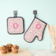 Elegant Pink Hydragea Flowers Pattern Monogram Oven Mitt & Pot Holder Set