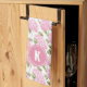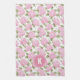 Elegant Pink Hydragea Flowers Pattern Monogram Tea Towel