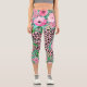 Elegant Pink Leopard Print and Floral Design Capri Leggings