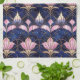 Elegant Iridescent Pink Lotus Faux Stained Glass Pattern design with navy blue background and gold accents
