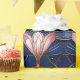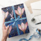 Elegant Iridescent Pink Lotus Faux Stained Glass Pattern design with navy blue background and gold accents