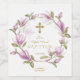 Elegant Pink Magnolia Flowers Wreath Gold Baptism Wine Label