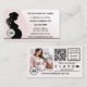 An elegant pink business card featuring a silhouette of a pregnant woman with your logo and contact information on the front. On the back is your photo, as well as QR code template and various social media icons. You can delete the social media you do not need and re-align them by using control-arrow on your keyboard.