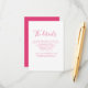 Wedding details enclosure card features an elegant script font together with a modern and clean typographical design. Hot pink colour carries onto the back of the card. This piece is ready for you to customise with the details of your special day. Part of an ever-growing collection, please browse the Elegant Pink Floral Watercolor Wedding Collection for complementing items.