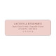 This elegant label features a clean, minimalist design with a soft pink background and classic serif typography. The layout is vertically oriented, emphasizing simplicity and sophistication through ample negative space and subtle contrast between the text and background. Perfect for formal occasions, this customizable label can be used to add a touch of refinement to invitations or special events. Its understated style makes it versatile for various applications where clarity and elegance are key.