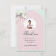 Celebrate your daughter's sacred baptism with this beautifully designed personalised Thank You Card. Featuring a soft pastel pink and mint green arched background, this invitation exudes elegance and serenity. A delicate watercolor bow adds a charming and graceful touch, while the "God Bless" script with a subtle cross emphasises the spiritual significance of the occasion. The circular photo frame allows you to add a personal touch, making this invitation a cherished keepsake. The blend of classic script and serif fonts enhances the timeless and sophisticated design. Perfect for baby girls' baptisms, christenings, or dedication ceremonies.
