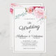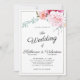 An elegant classic traditional black and white formal script with botanical mint green and pink watercolor floral wedding invitations.