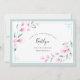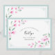 Elegant airy watercolor design. Twigs with blush pink flowers and green leaves resembling cherry blossom. Light pastel colours: blush pink, pink, light green, mint green. Mint border. Modern calligraphy font.