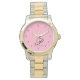 pink watchpinkgoldtwo tone wrist accessoryelegant timepiece designpersonalised name dialstylish dual tone bandmodern minimalist clockfeminine fashion accessorychic wristwatch style