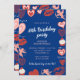 Elegant Pink Navy Blue Hearts 87th birthday Invitation