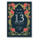 Capture timeless elegance with this Art Nouveau-inspired Table Number! Featuring pink peonies, leaves against a rich blue background, this design sets the tone for a sophisticated celebration. Perfect for weddings, galas, and milestone events! Please note that the gold on this product is NOT real foil; it is printed flat. ATTENTION: Items are printed exactly as they appear on your screen when you add them to the cart, so personalise and add each table number you need to your cart individually.