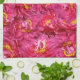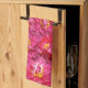 Elegant Pink Peony Stylish Calligraphy Monogram Tea Towel