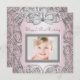 Elegant silver grey swirls pink and grey first birthday party invitation template. This beautiful pink and grey photo birthday party invitation is easily customised for your event by simply adding your photo and event details, font style, font size & colour, and wording. Please note - all of the stickers, cards and invitation designs you will find on Zazzle are printed graphics with no actual jewels, bows, raised, embossed, or added parts or pieces.
