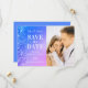 Elegant Pink Purple Blue Glitter Photo Wedding Save The Date Invitation Invite features an elegant white script on a blue and purple glitter background with your favourite photo. Perfect for weddings, birthday, anniversary, Bat Mitzvah, baby showers, parties and celebrations. Designed for you by © Evco Studio at www.zazzle.com/store/evcostudio
