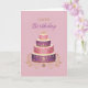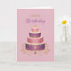 A beautifully detailed birthday card featuring a vibrant pink and purple tiered cake adorned with intricate patterns and gold accents. Set against a soft blush background with elegant “Happy Birthday” lettering, this design creates a rich and celebratory feel—perfect for a stylish and memorable birthday.