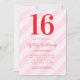Create your own personalised 16th birthday invitations featuring modern typography and striped pink pattern background