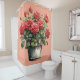 Brighten your bathroom with this elegant shower curtain featuring beautifully painted watercolor red roses arranged in a classic vase against a soft blush pink background. The delicate floral design adds a touch of timeless beauty and subtle romance to any space. Perfect for those who appreciate feminine and artistic decor, this shower curtain brings a fresh, charming vibe to your everyday routine.