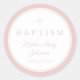 Elegant Pink Religious Cross Girl Baptism Classic Round Sticker