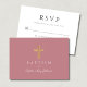 Elegant Pink Religious Cross Girl Baptism RSVP Card