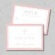 Elegant Pink Religious Cross Girl Baptism RSVP Card